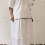 Fully lined mid length skirt with fine gathers to create fullness throughout