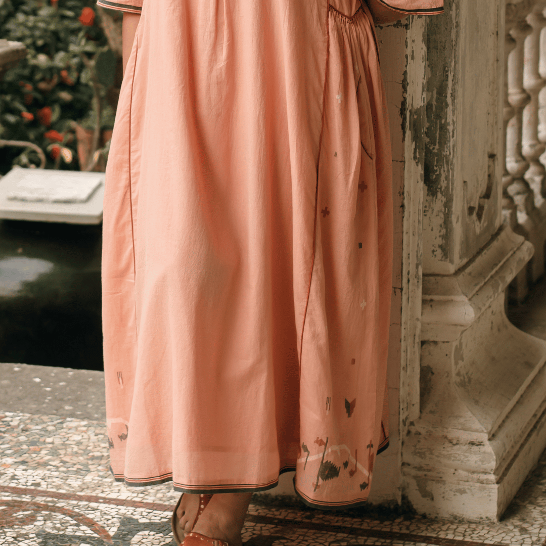 An extra weft weaving technique to create special motif designs into the base fabric. Evocative of exquisite craftsmanship, every design is carefully planned and woven into sheer soft cotton threads. An intricate Jamdhani weaving technique going back thousands of years.