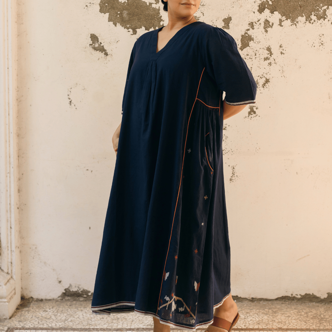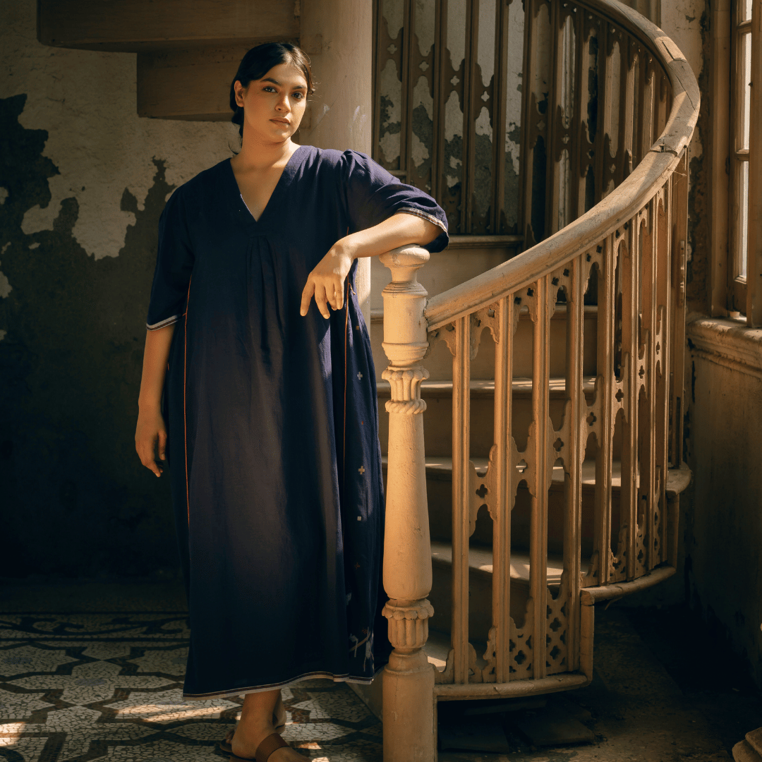 An extra weft weaving technique to create special motif designs into the base fabric. Evocative of exquisite craftsmanship, every design is carefully planned and woven into sheer soft cotton threads. An intricate Jamdhani weaving technique going back thousands of years.