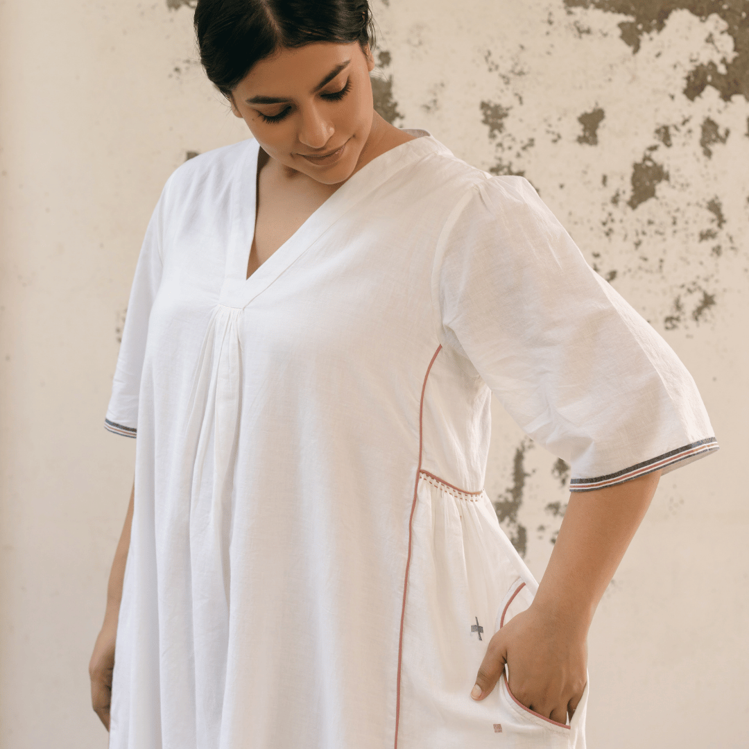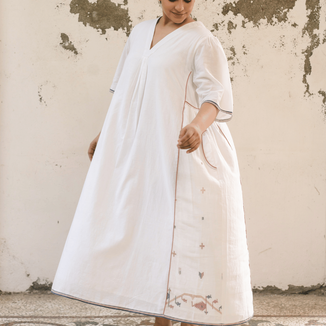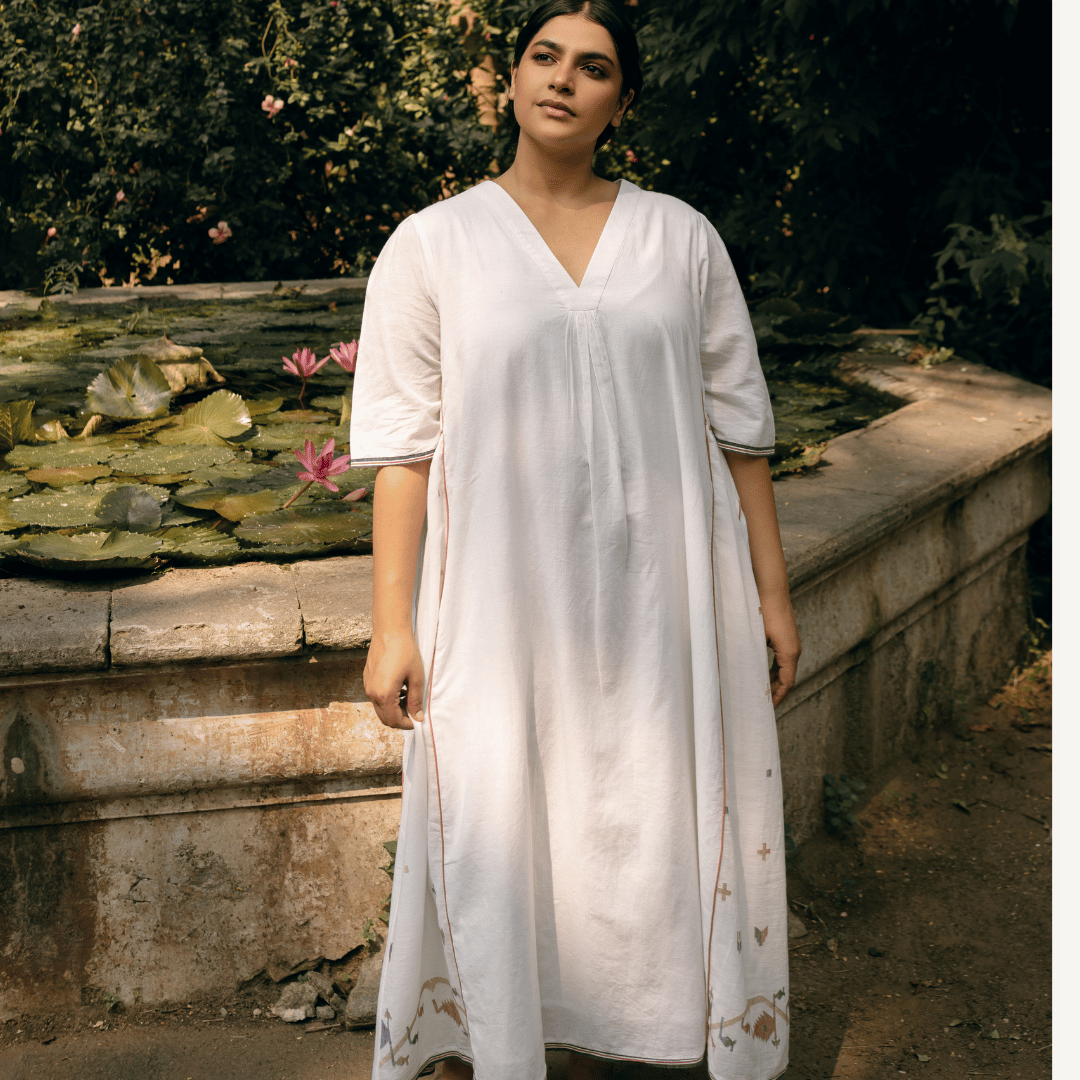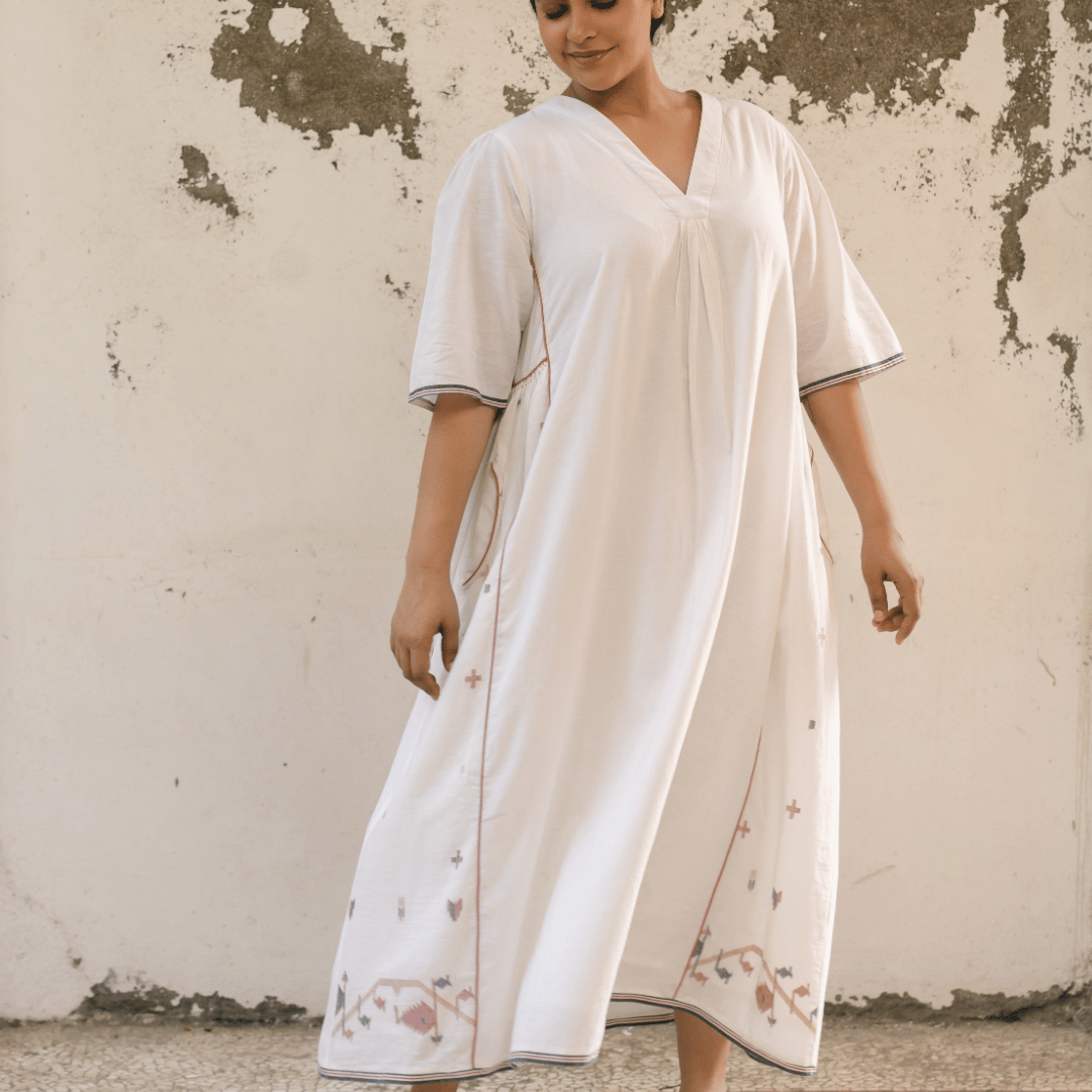 An extra weft weaving technique to create special motif designs into the base fabric. Evocative of exquisite craftsmanship, every design is carefully planned and woven into sheer soft cotton threads. An intricate Jamdhani weaving technique going back thousands of years.