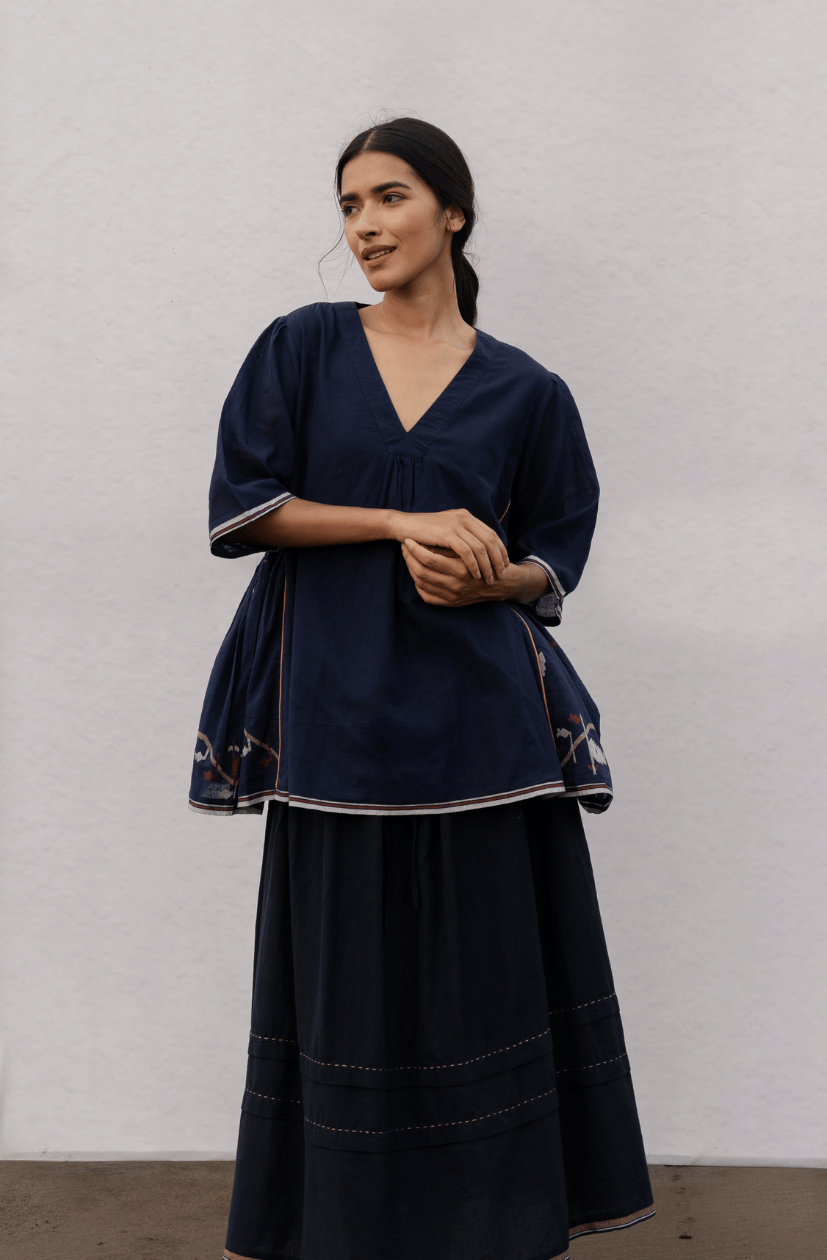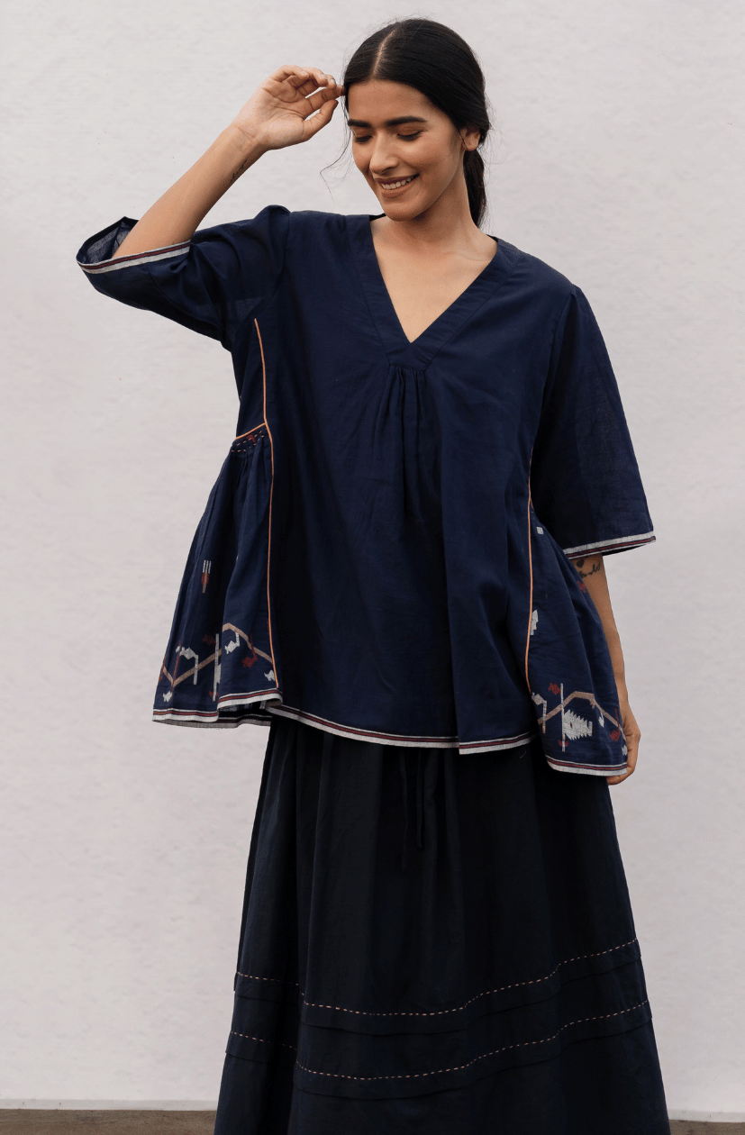Hana Top Navy Motifs