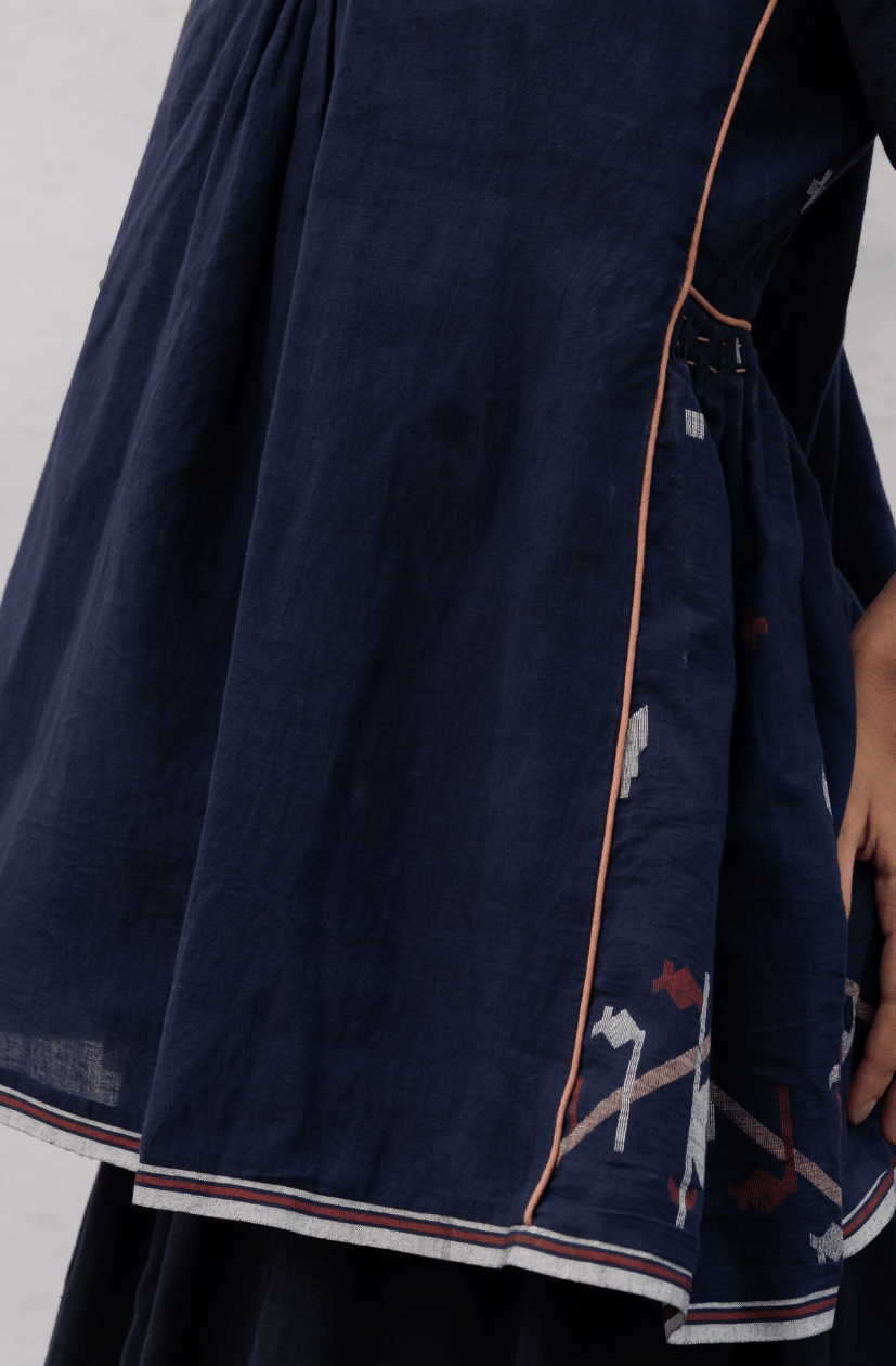 An extra weft weaving technique to create special motif designs into the base fabric. Evocative of exquisite craftsmanship, every design is carefully planned and woven into sheer soft cotton threads. An intricate Jamdhani weaving technique going back thousands of years.