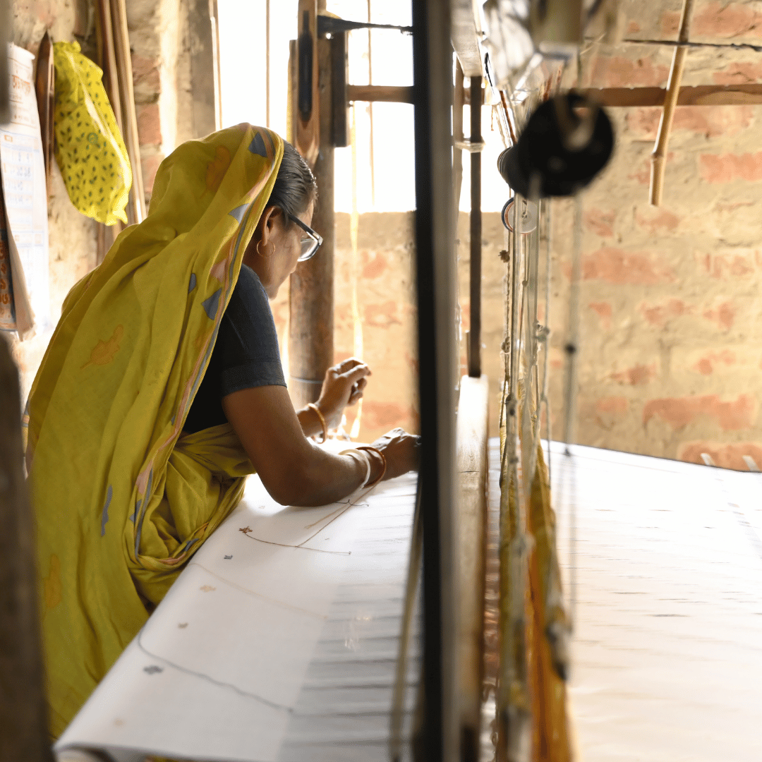 All our fabrics are designed with natural fibres and eco-friendly dyes that are breathable and gentle on the skin. Entirely hand-woven by skilled artisans with traditional weaving processes.
