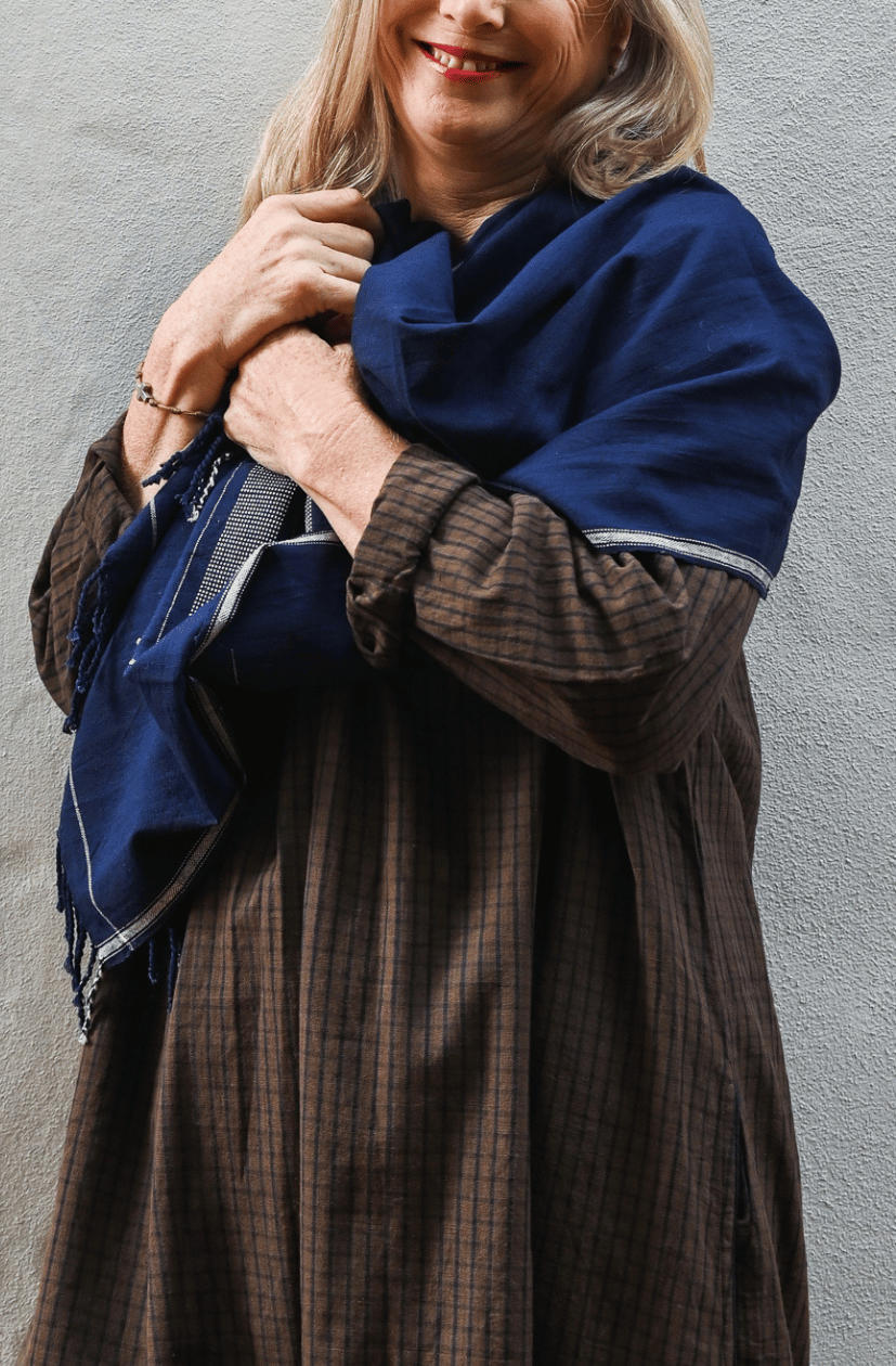 Hand-loomed Cotton Stole - Ink