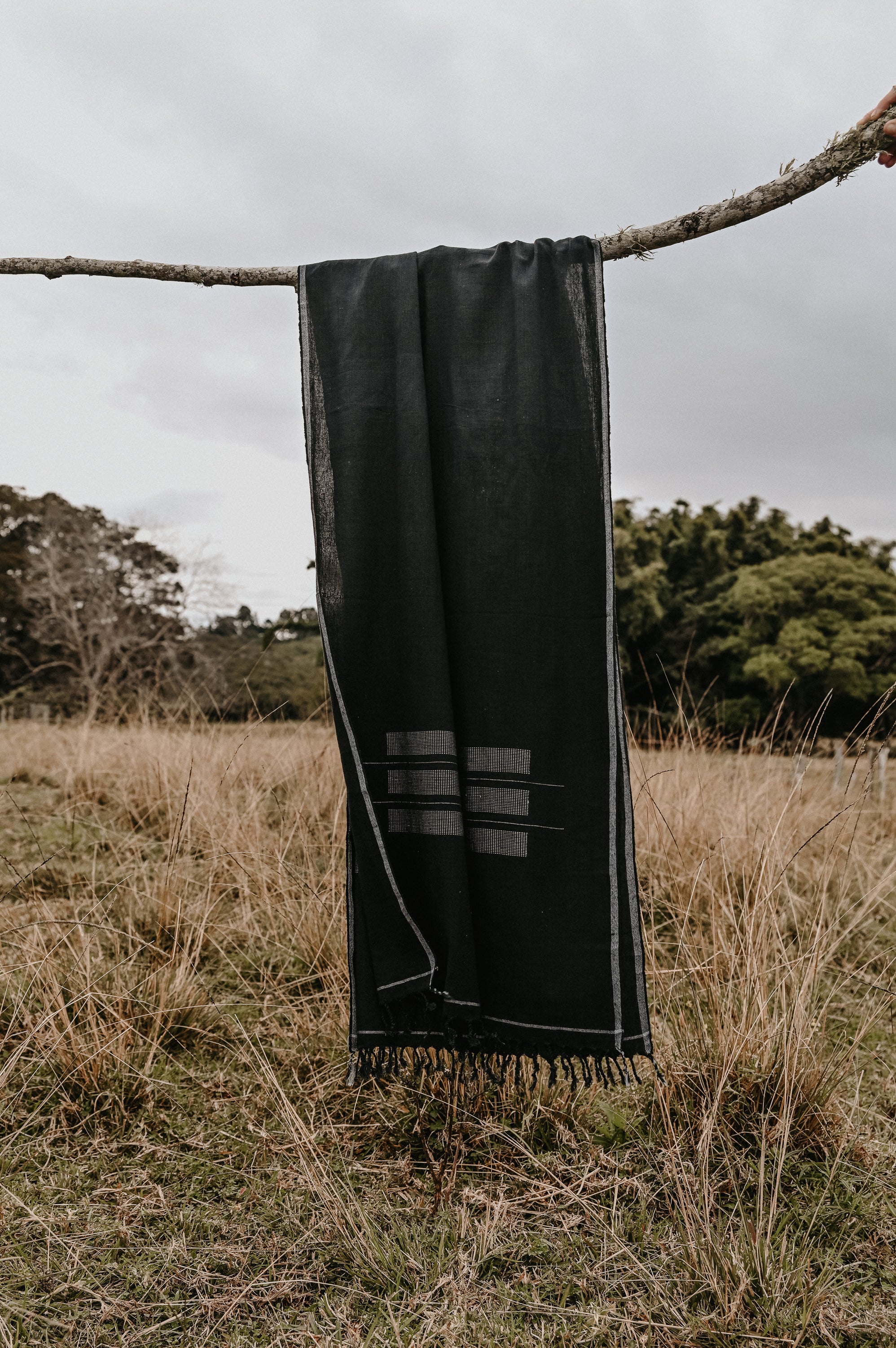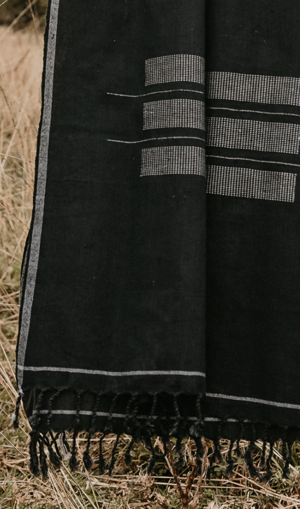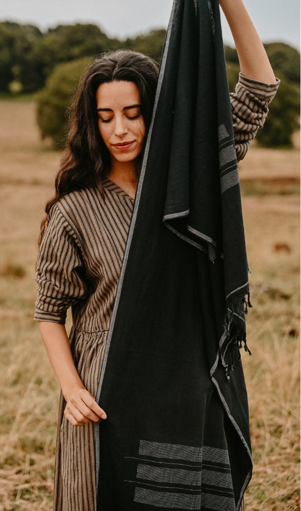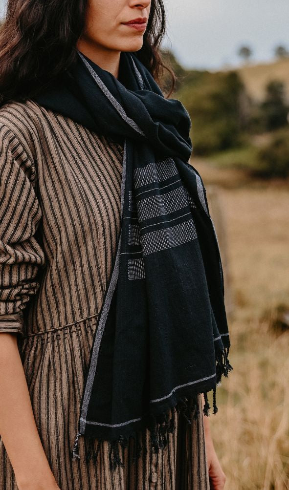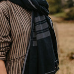 Hand-loomed Cotton Stole - Charcoal