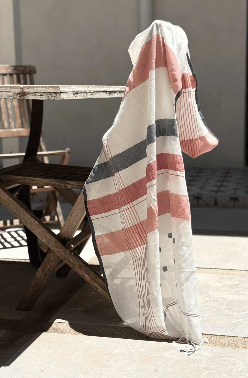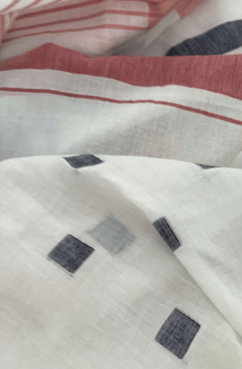 An extra weft weaving technique to create special motif designs into the base fabric. Evocative of exquisite craftsmanship, every design is carefully planned and woven into sheer soft cotton threads. An intricate Jamdhani weaving technique going back thousands of years.