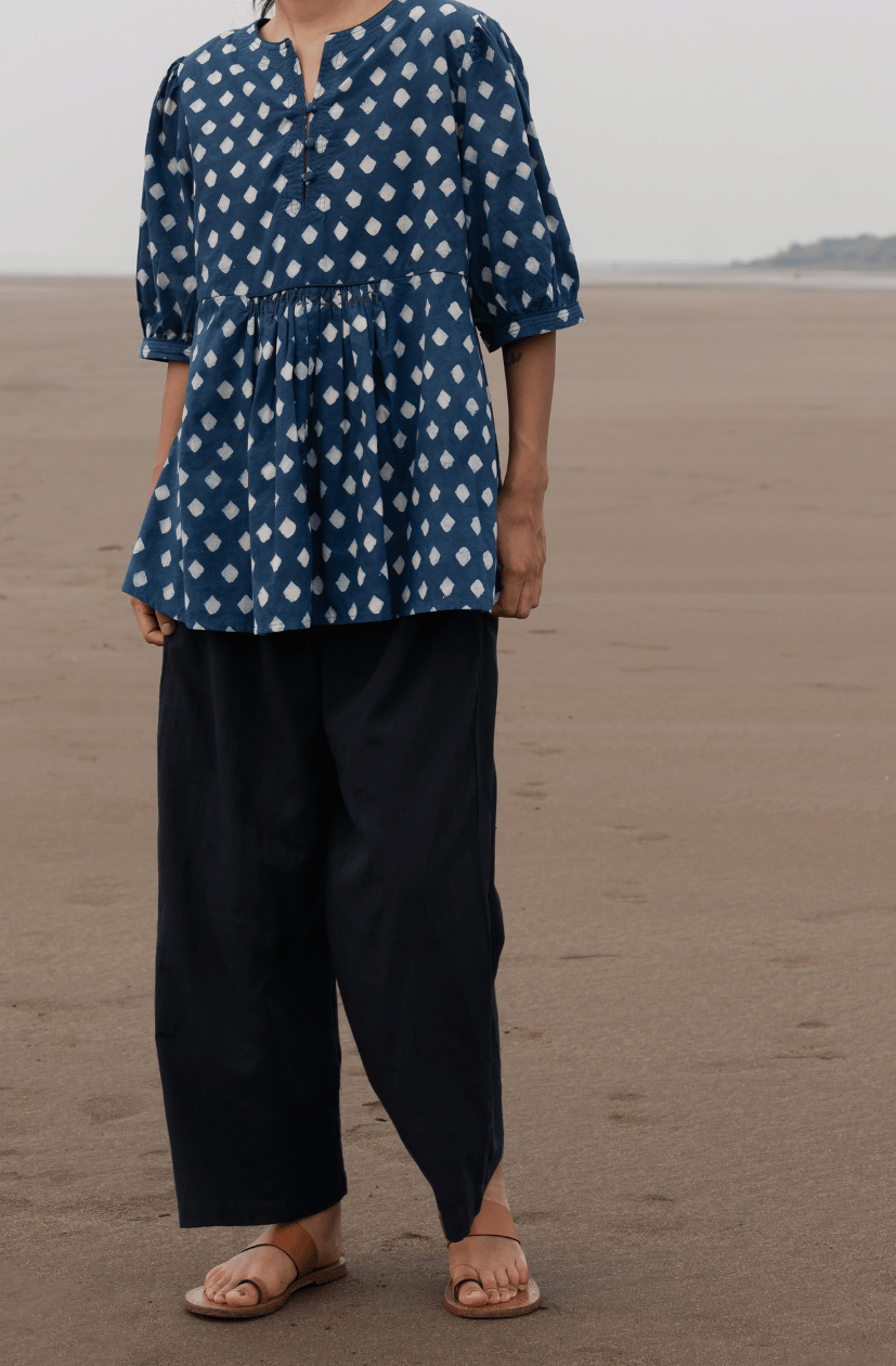 Our very own fabric design has been hand dyed and handwoven by our specialised skilful weavers on handloom in West Bengal using traditional weaving techniques.  We support to keep traditional crafts alive.