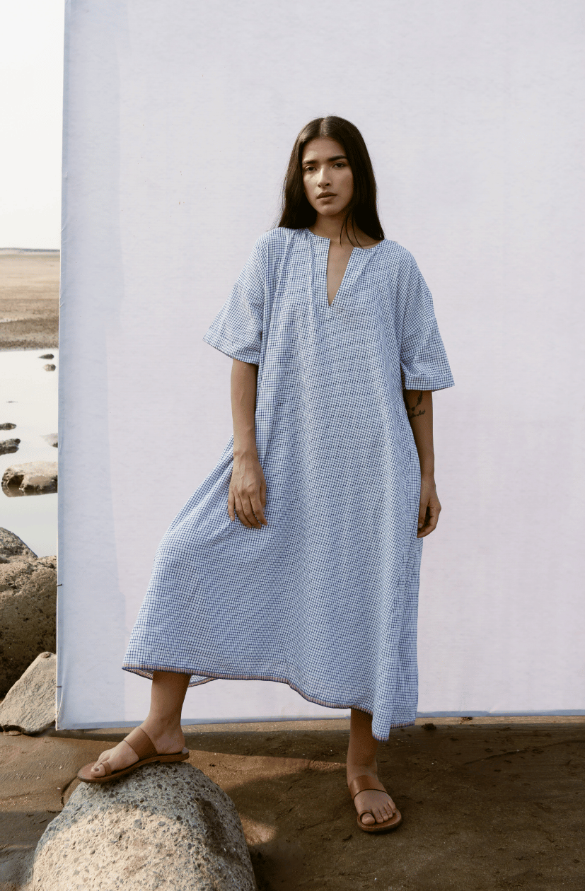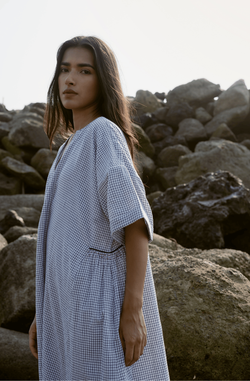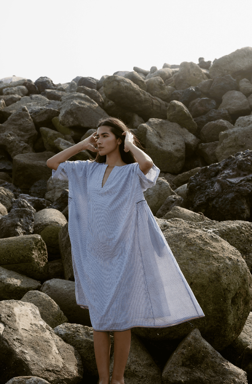 Our very own check fabric design has been hand dyed and handwoven by our specialised skillful weavers on handloom in West Bengal using traditional weaving techniques.  We support to keep traditional crafts alive.