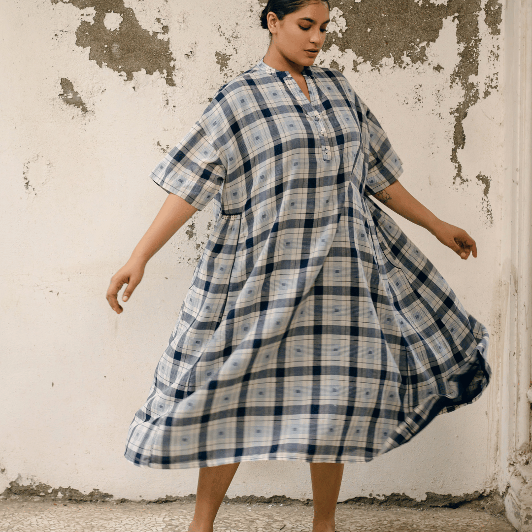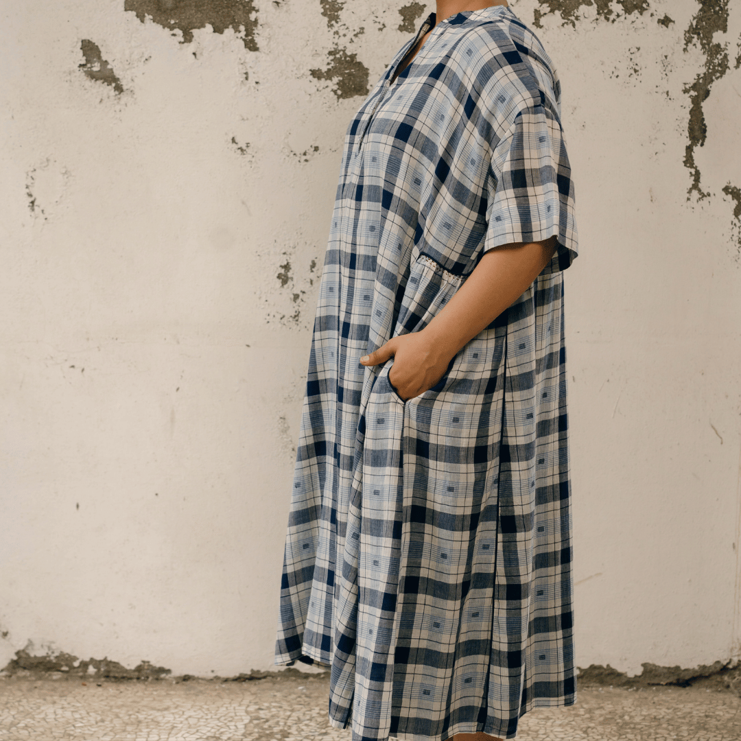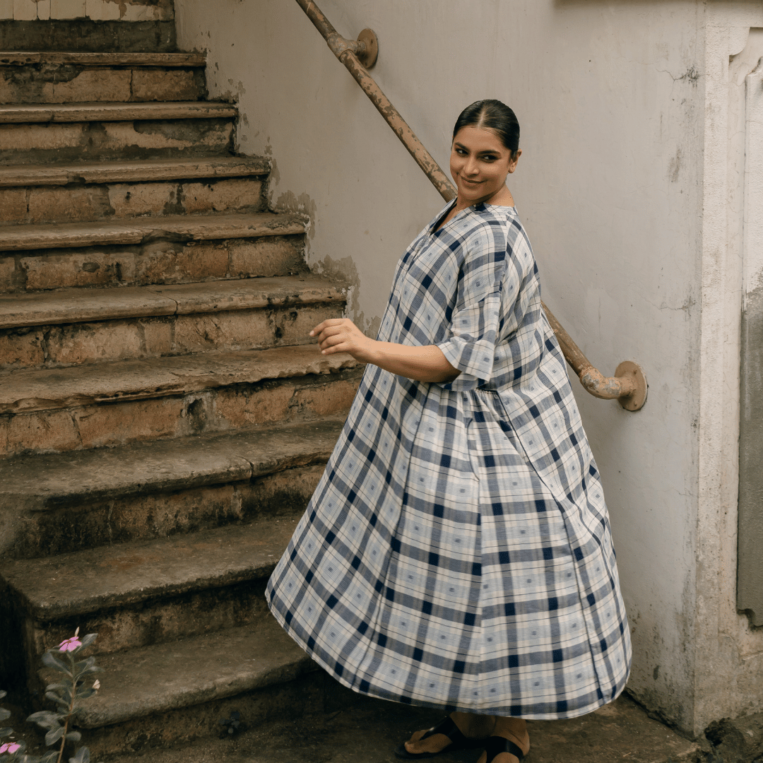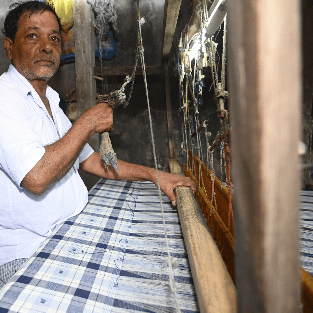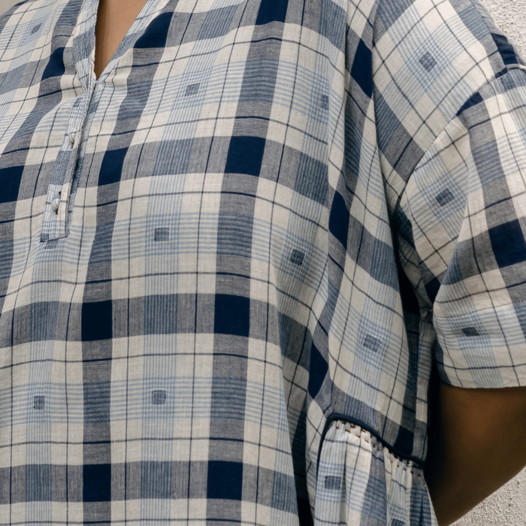 Our very own check fabric design has been hand dyed and handwoven with intricate square motifs by our specialised skilful weavers on handloom in West Bengal using traditional weaving techniques.  We support to keep traditional crafts alive.